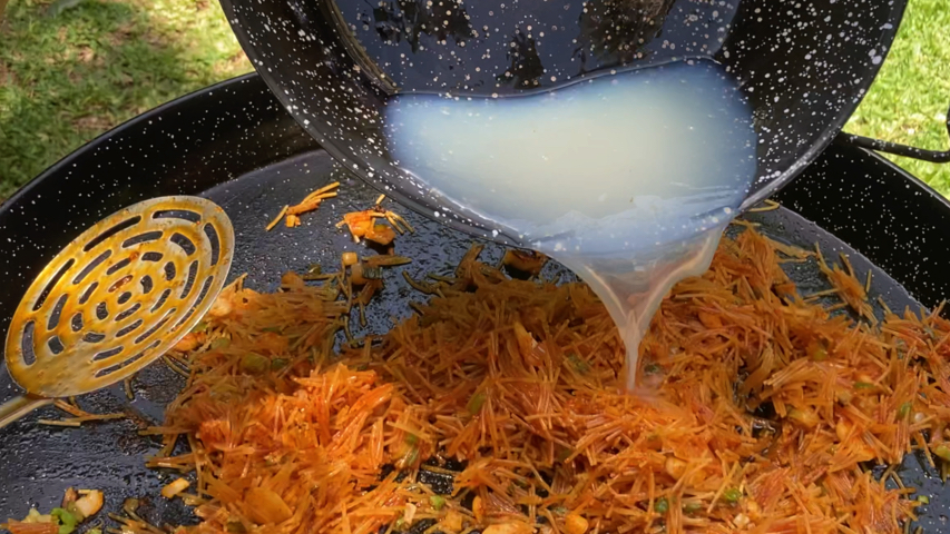 - Vierte el caldo, mezcla y deja que se hagan los fideos y el caldo sobrante se evapore.
