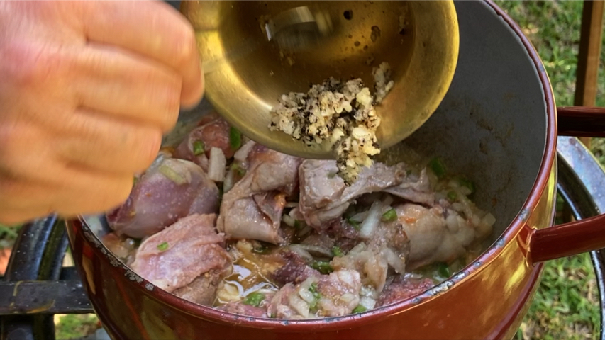 - Mezcla todo y deja que sofría la verdura y se dore el conejo un poco.